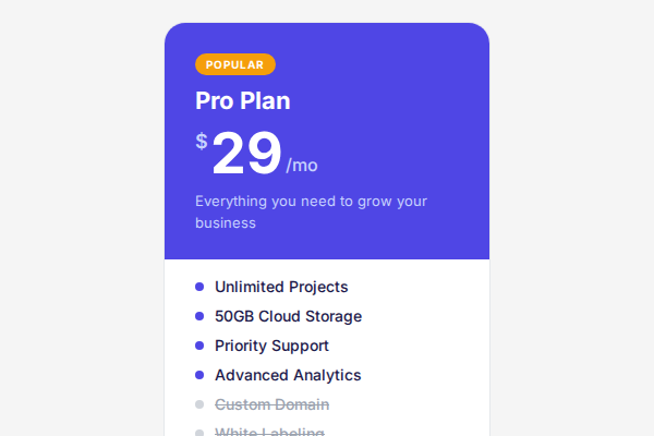 Pricing Plan Card