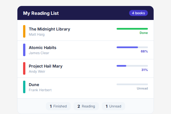 Reading Progress Bookshelf