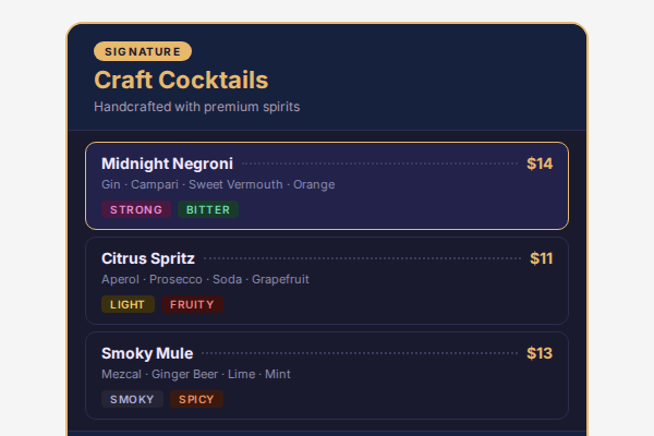 Cocktail Recipe Menu Card